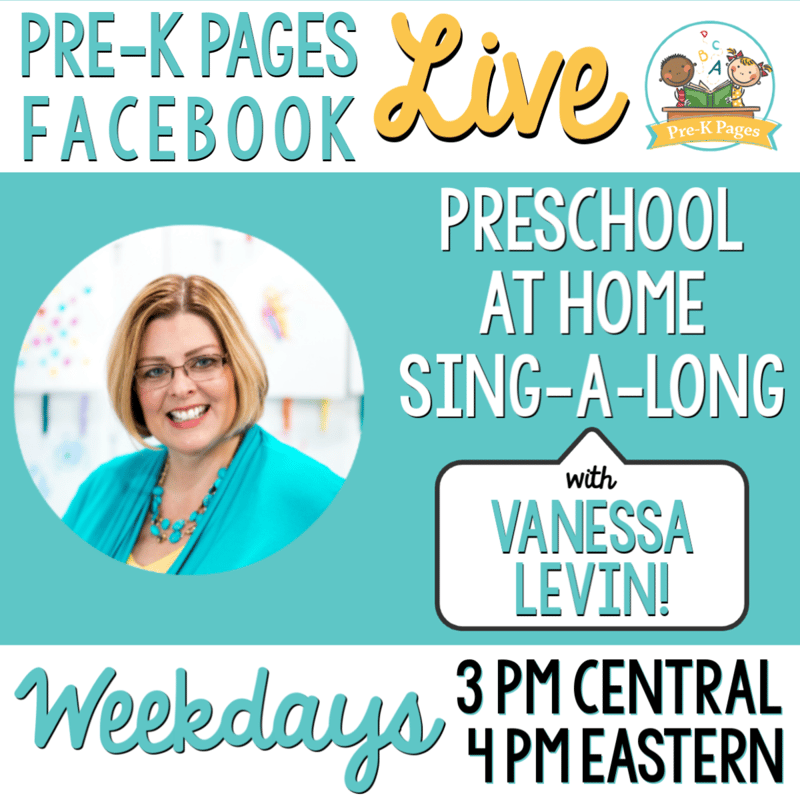 VANESSA LEVIN, Founder of The Teaching Tribe, has started going Live on Facebook every weekday at 3 PM Central/4 PM Eastern with my Preschool at Home Sing-A-Long Series.